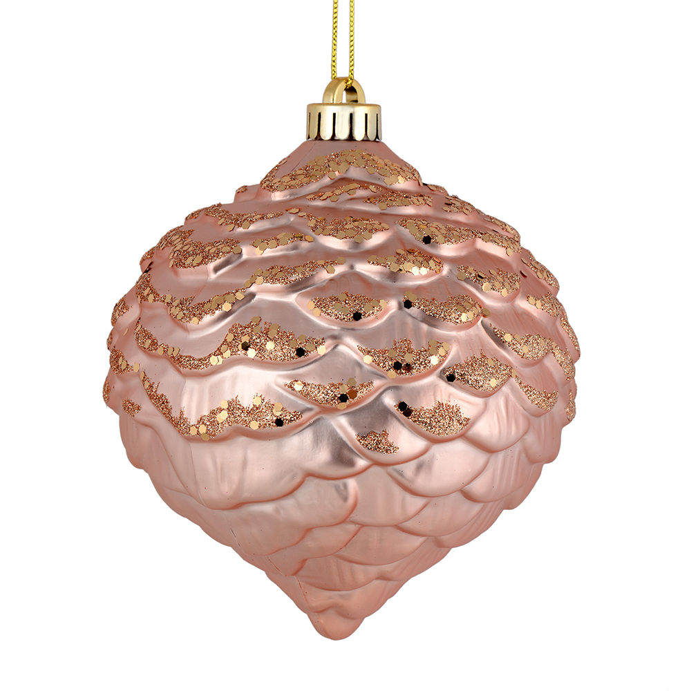 7" Rose Gold Matte Glitter Pinecone 4/Bg