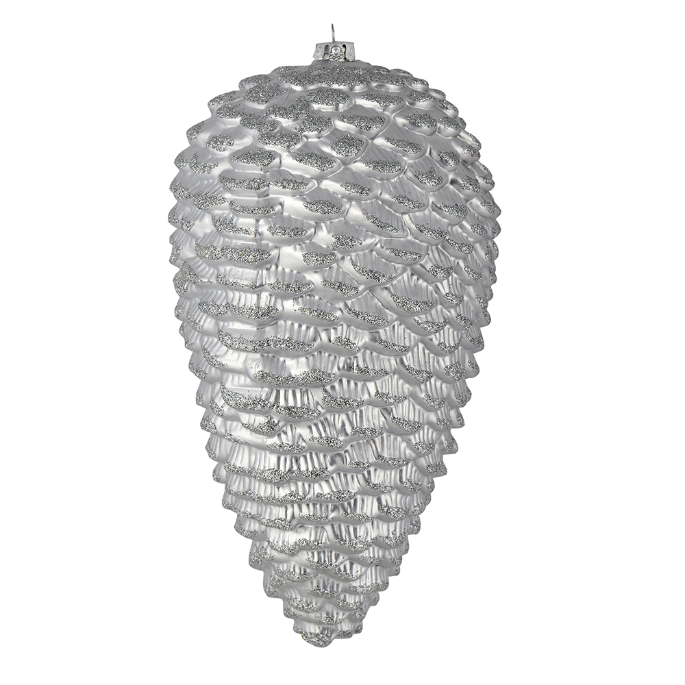 10" Silver Matte Glitter Pinecone 2/Box