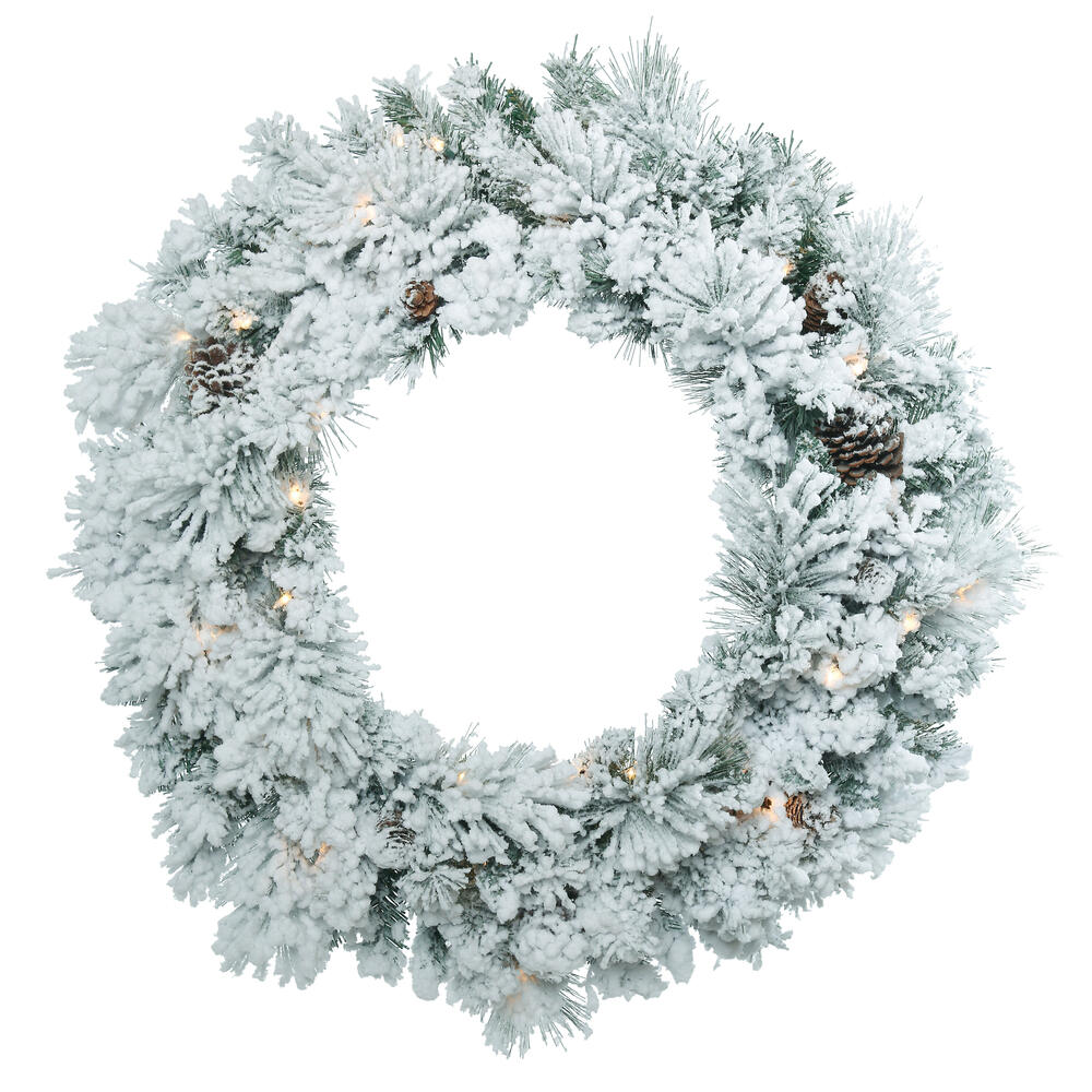 30" Flocked Ashton Wreath Dura-Lit 50CL