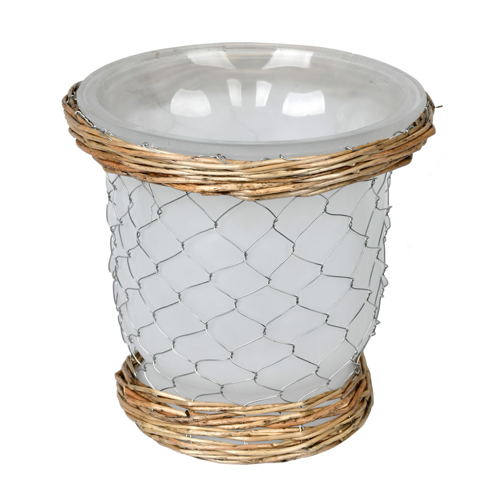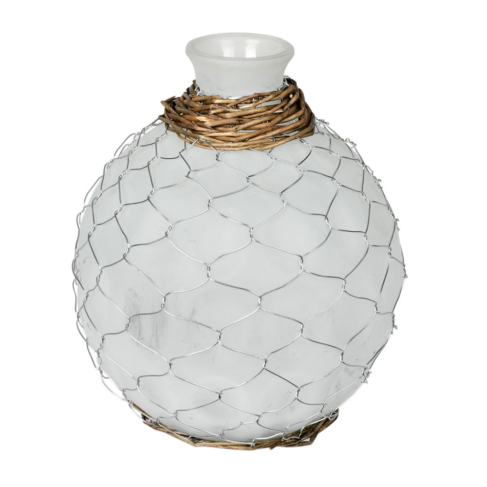 7.3" Frosted Glass Vase Chicken Wire