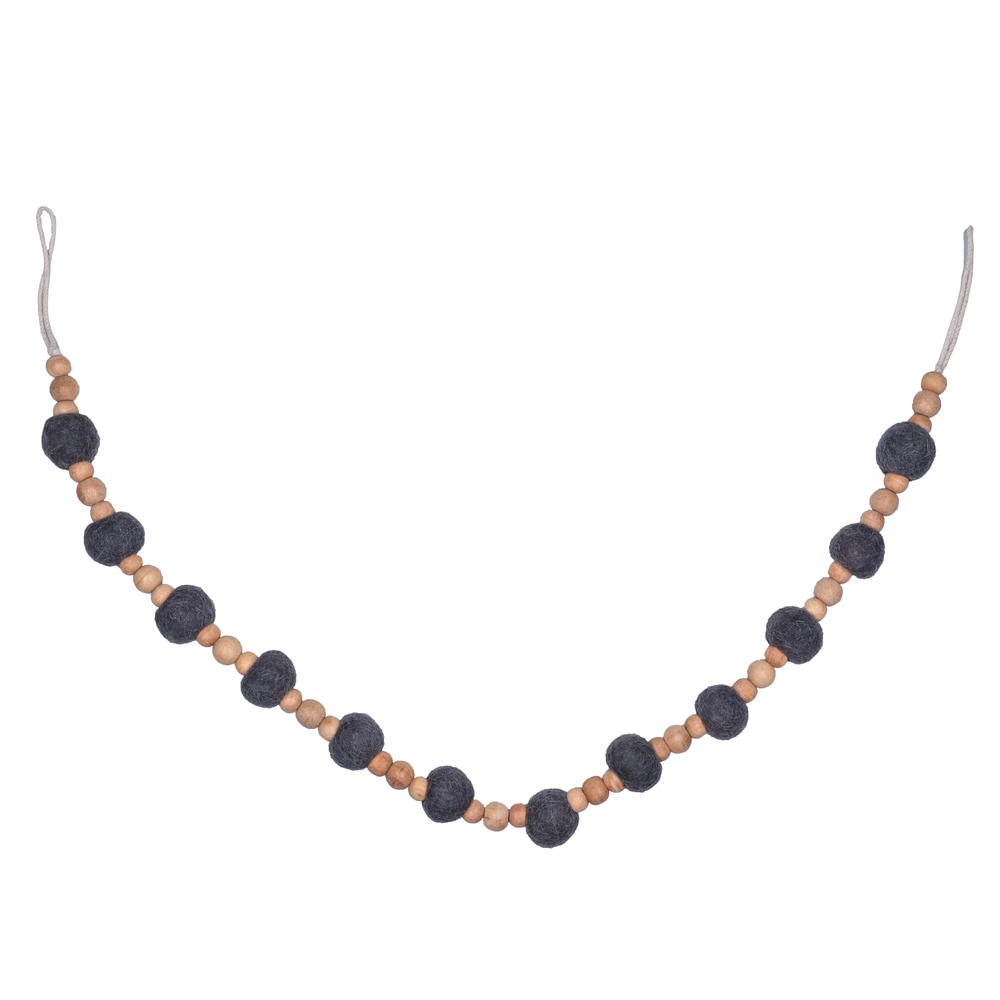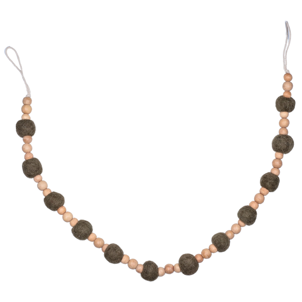 72" Olive Wood/Felt Pom Pom Garland