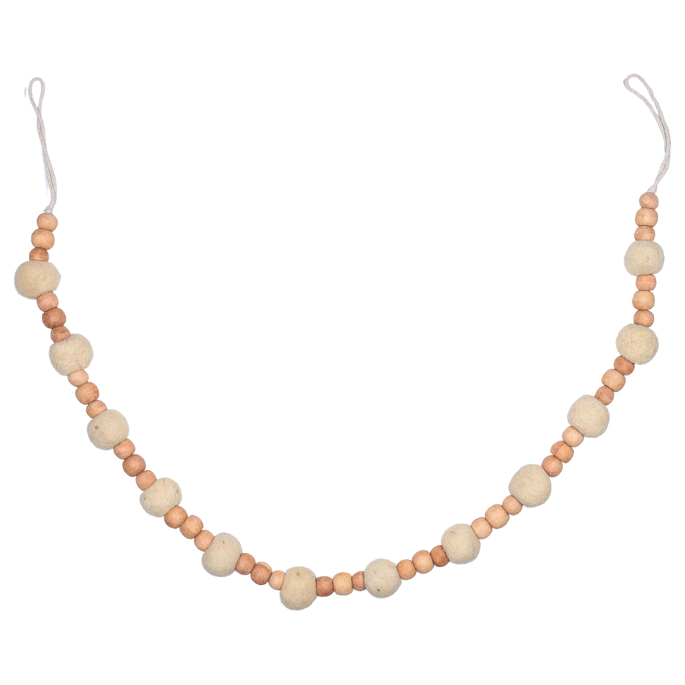 72" Natural Wood/Felt Pom Pom Garland