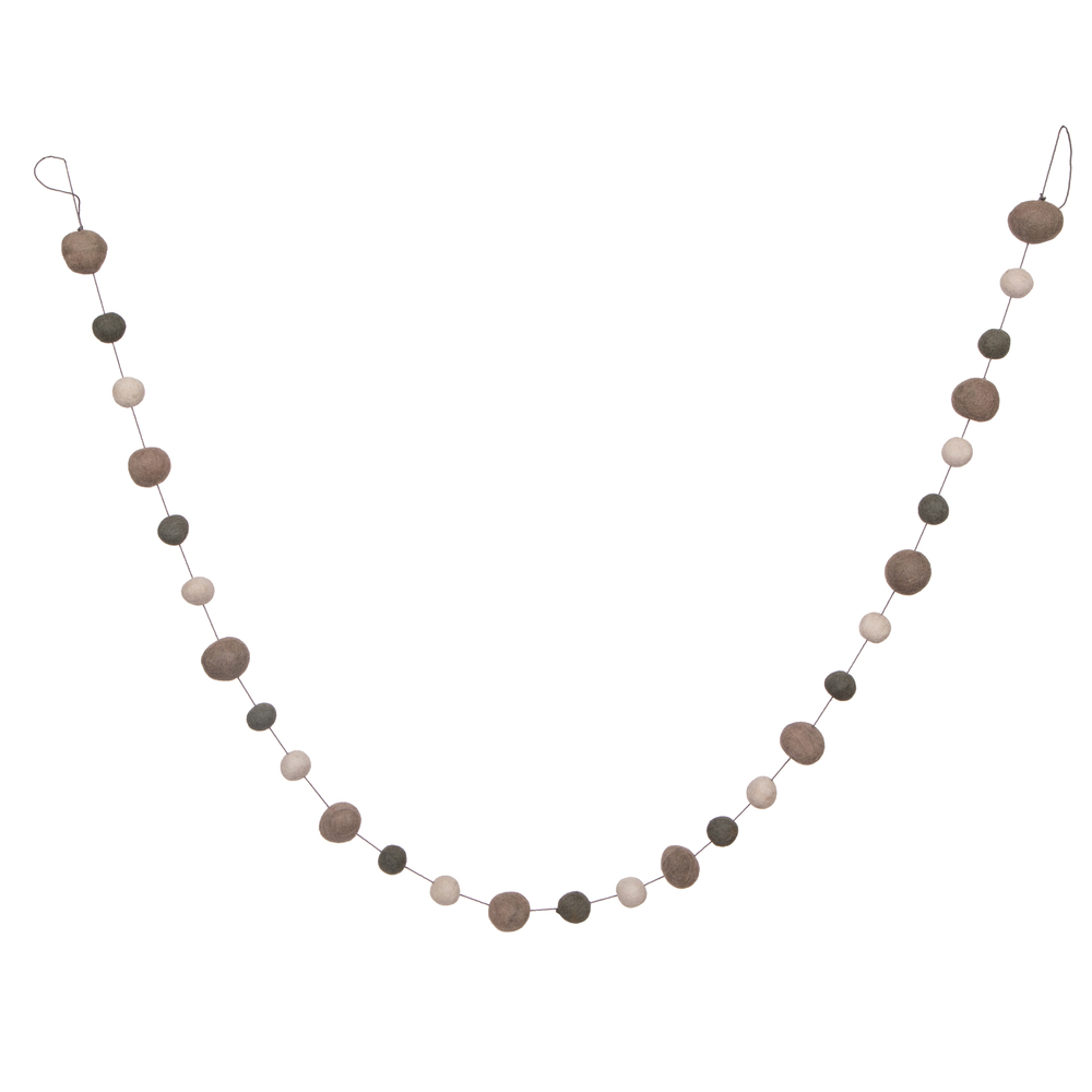 72" Mocha Wood/Felt Pom Pom Garland