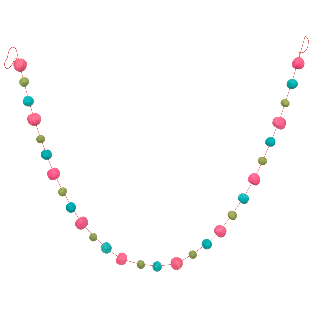 6' Pink/Turqse/Lime Wool Pom Pom Garland
