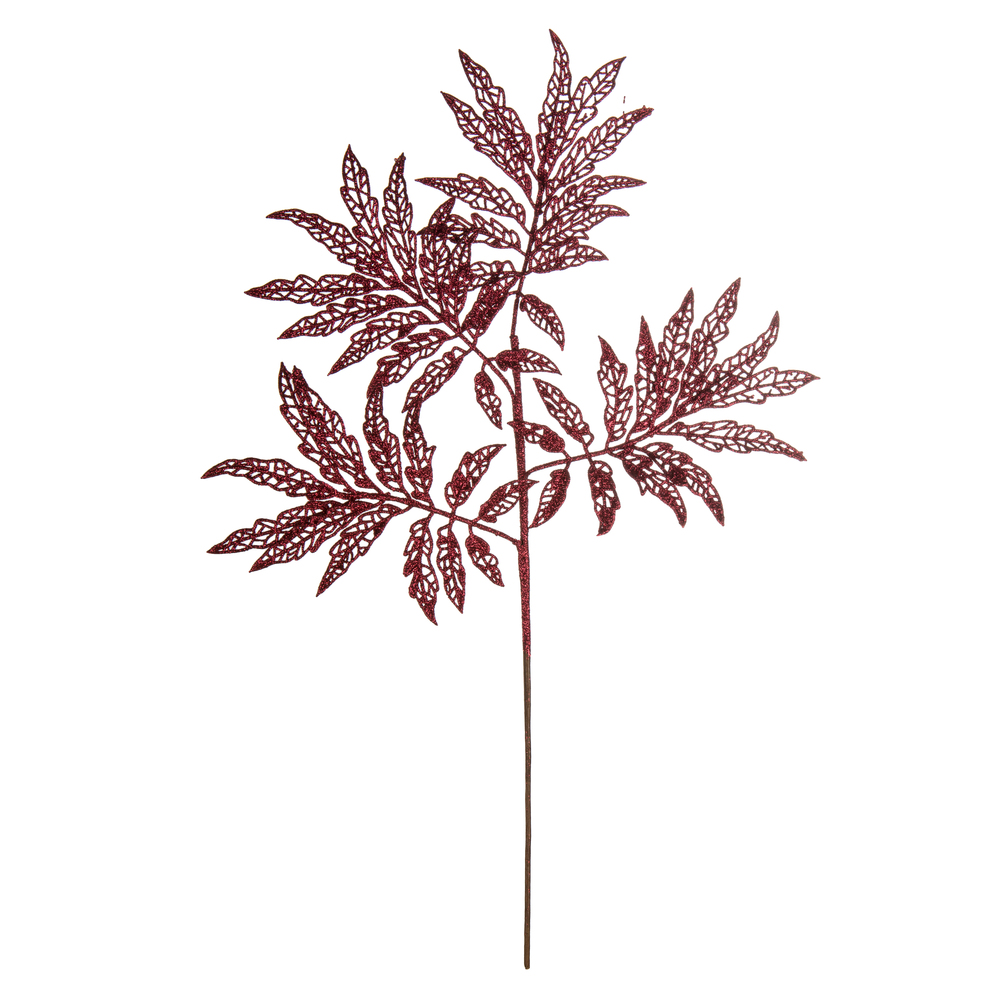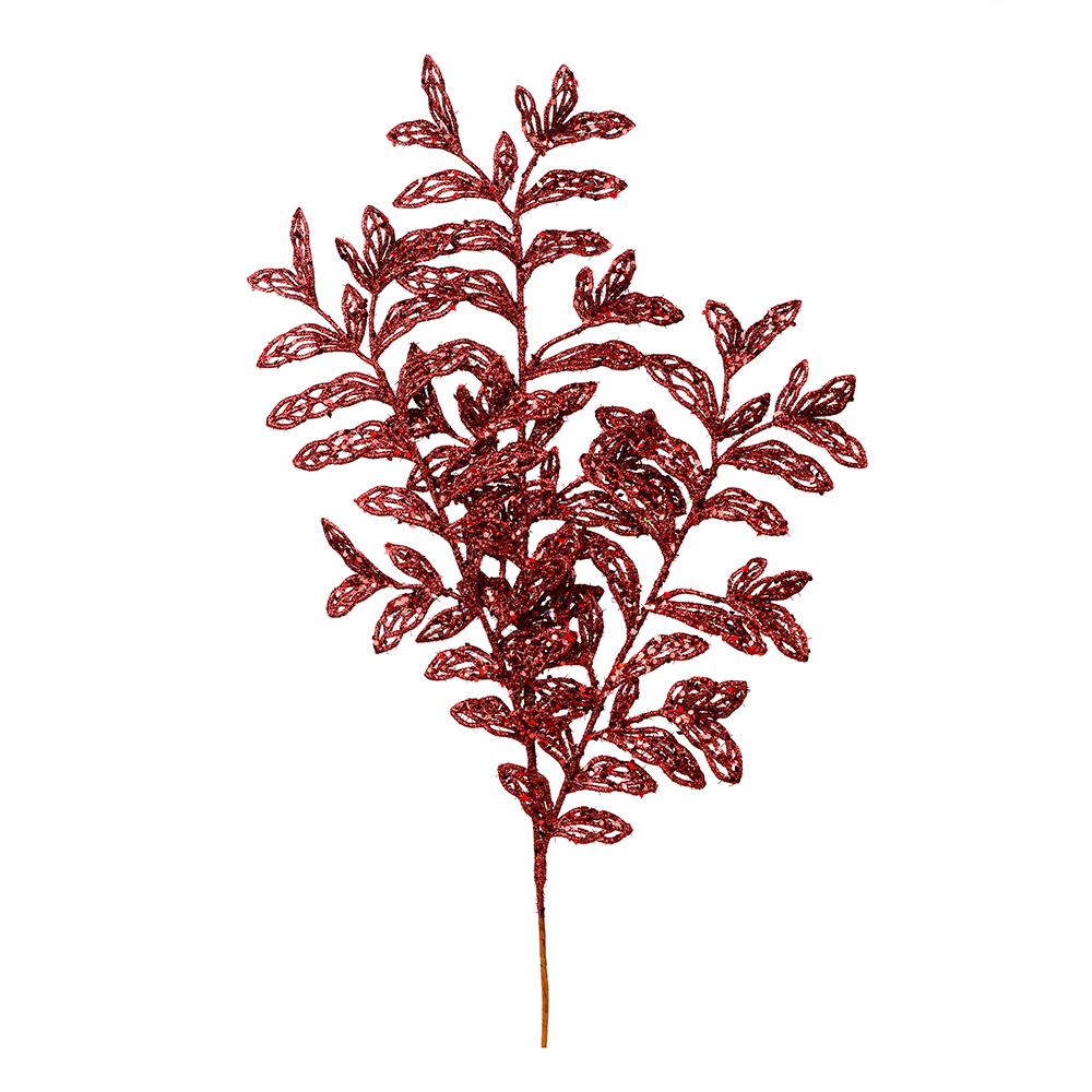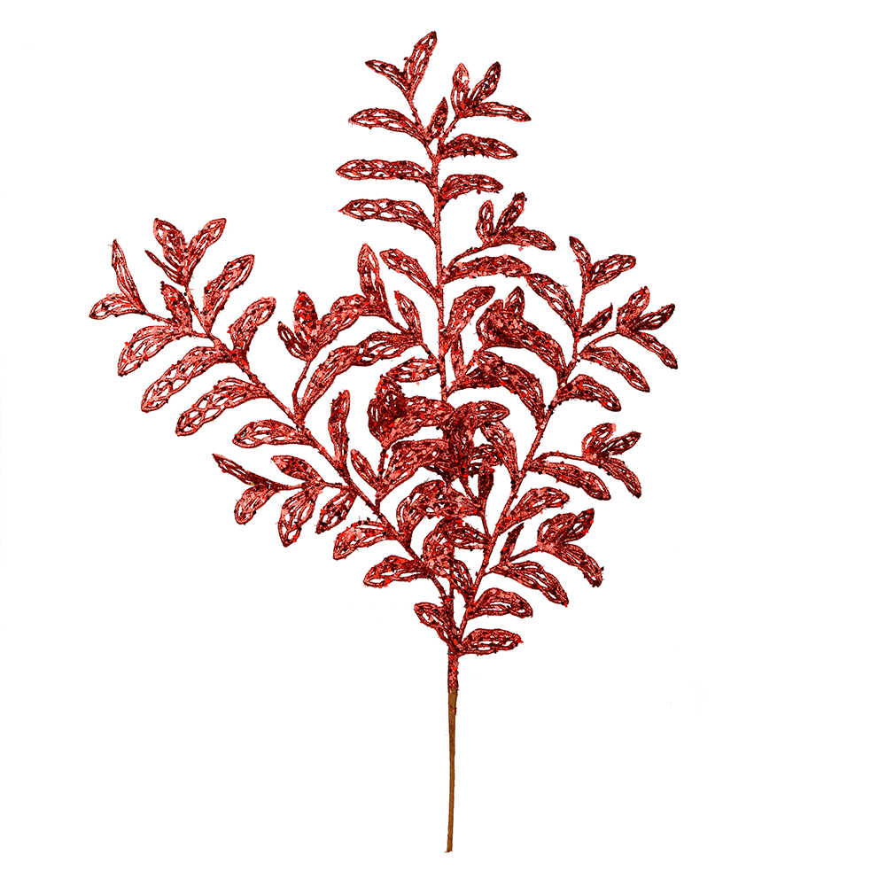 22" Red Bipinnate Glitt Leaf Spray 12/Bg