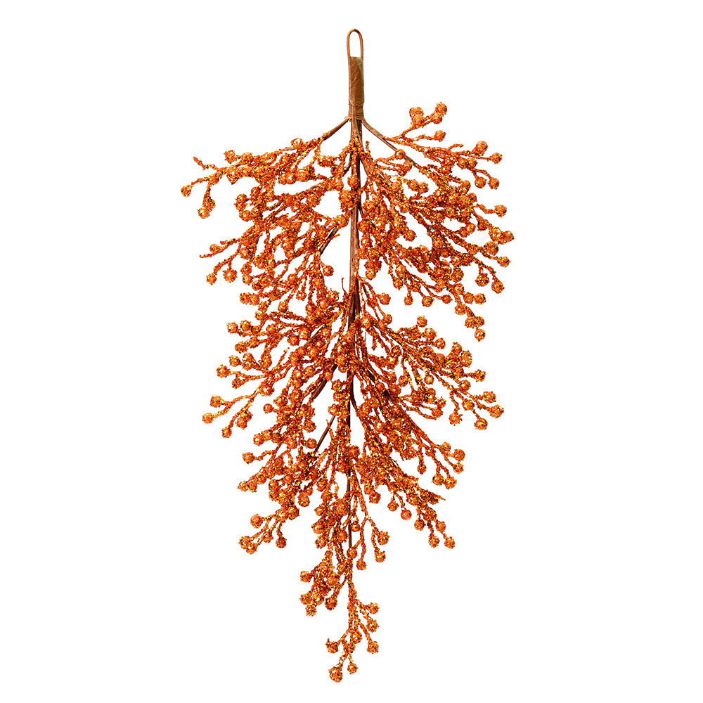 22" Burn Orange Glit Holly Lf Spray 12/B