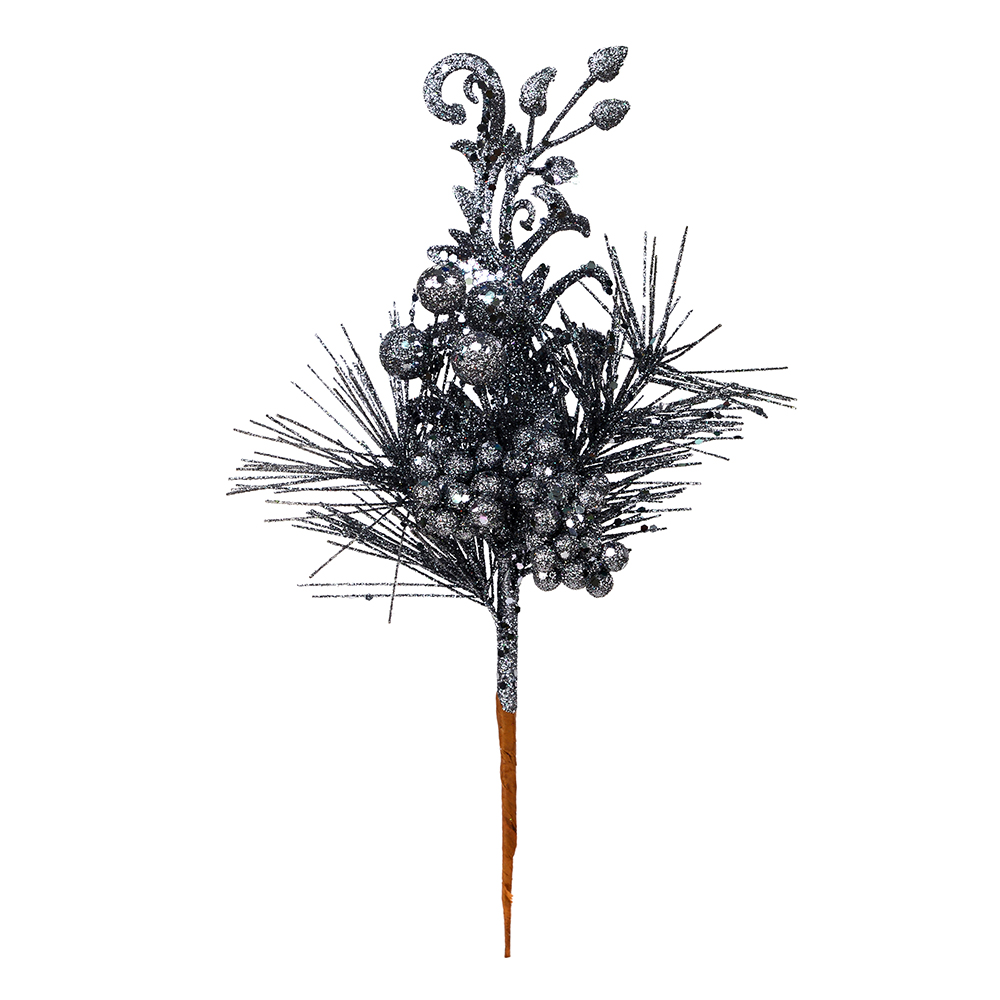 10" Gunmetal Berry Glitt Leaf Pick 12/Bg