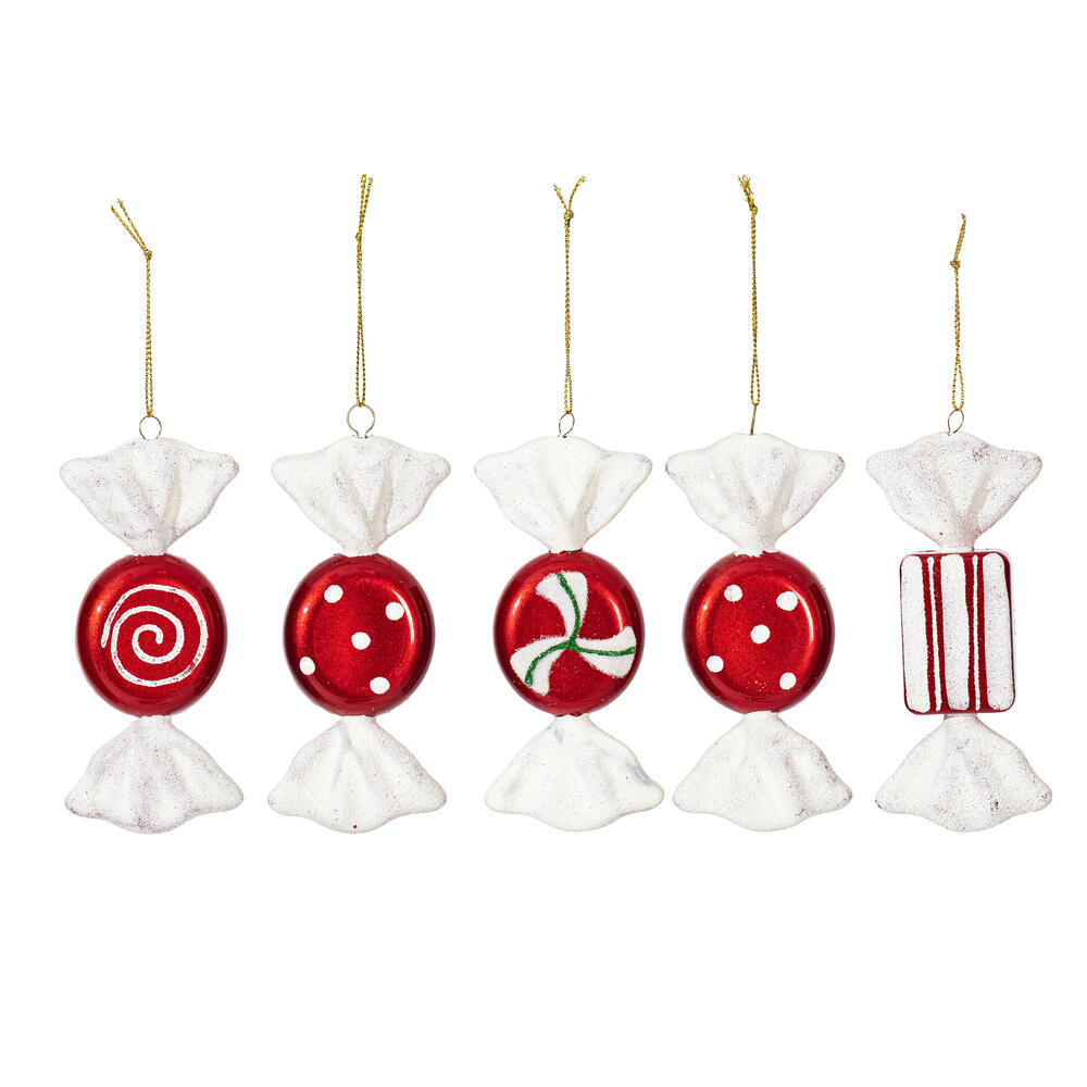 3.5" Red-White Candy Orn 5 Asst 5/Bx