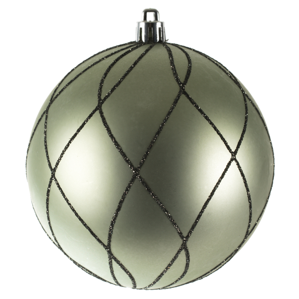 4" Green Matt Glitter Swirl Ball 4/Bx