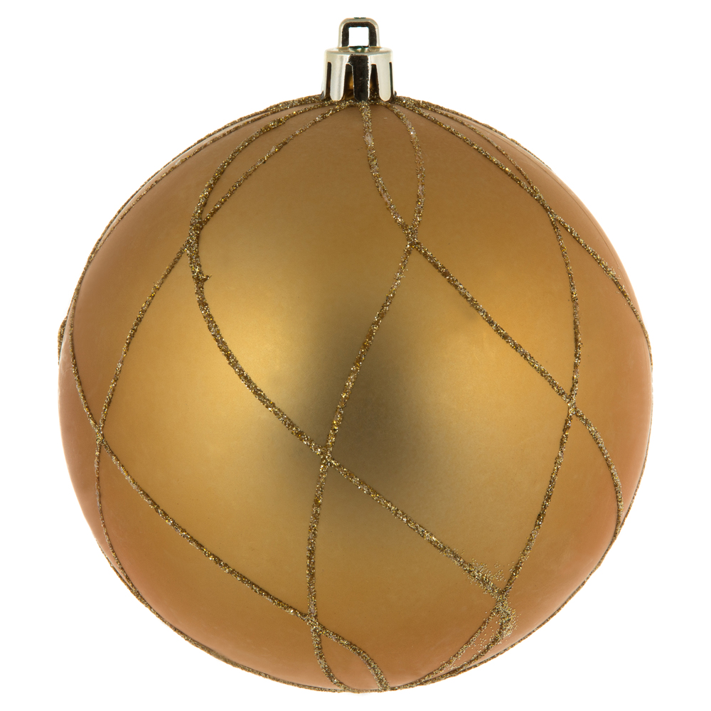4" Gold Matt Glitter Swirl Ball 4/Bx