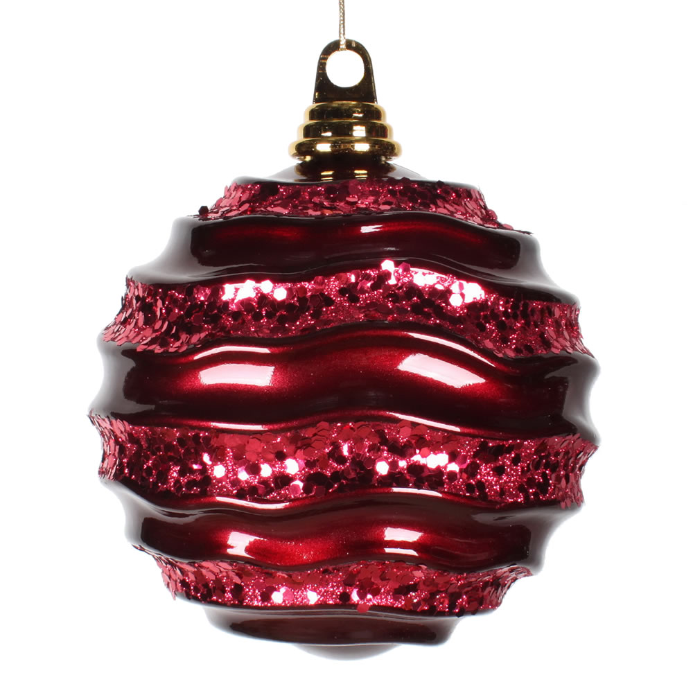 6" Berry Red Candy Glitter Wave Ball