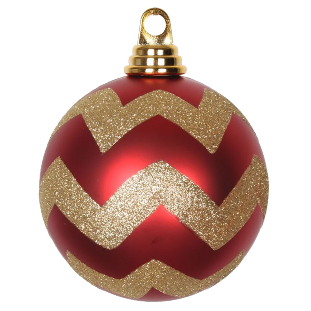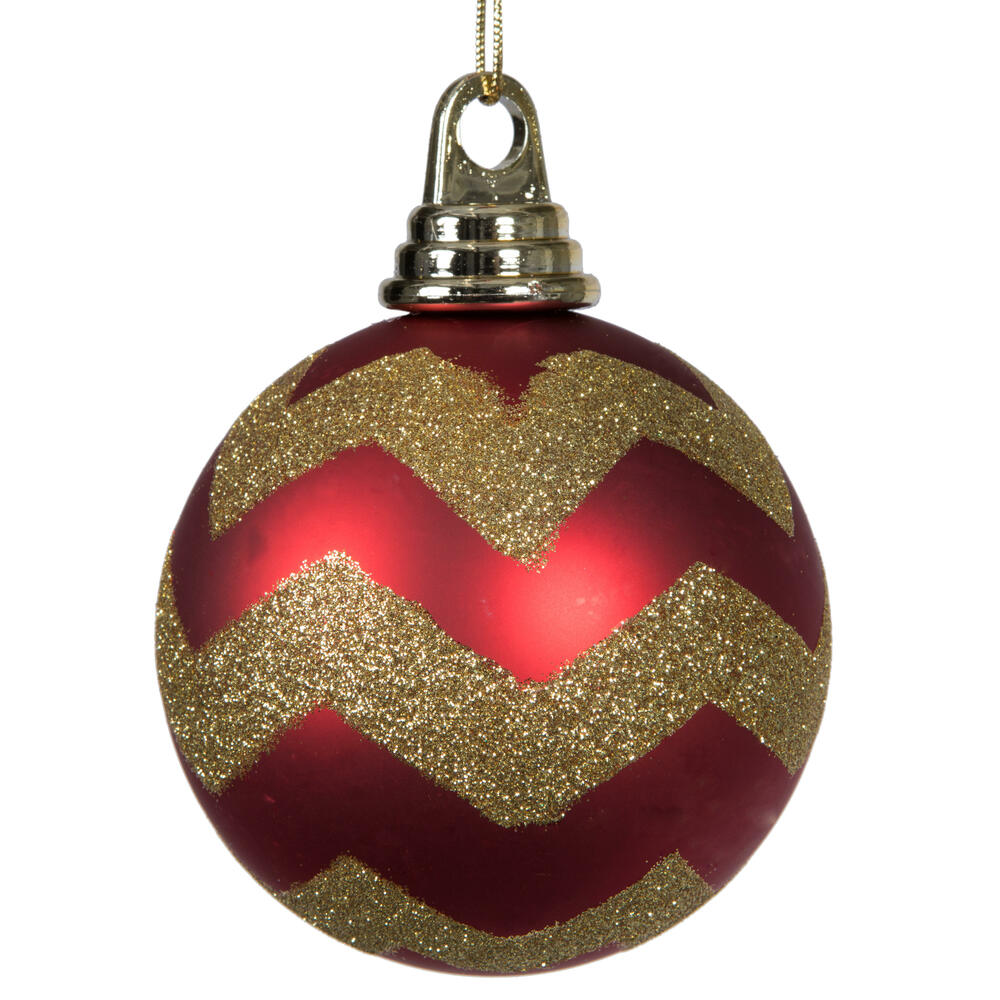4" Red-Gold Matt-Glitt Chevron Ball 4/Bx