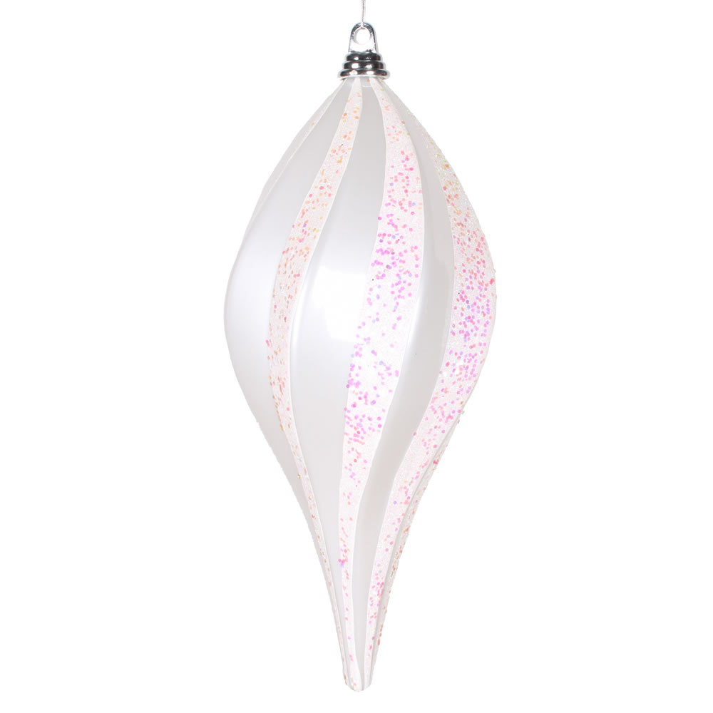 12" Silver Candy/White Glitter Drop Orn
