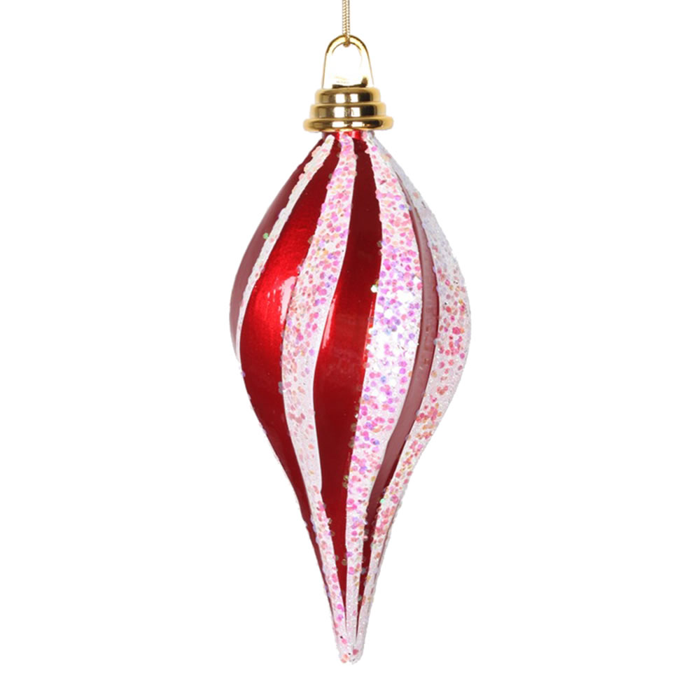 12" Red-White Candy Glitter Swirl Drop