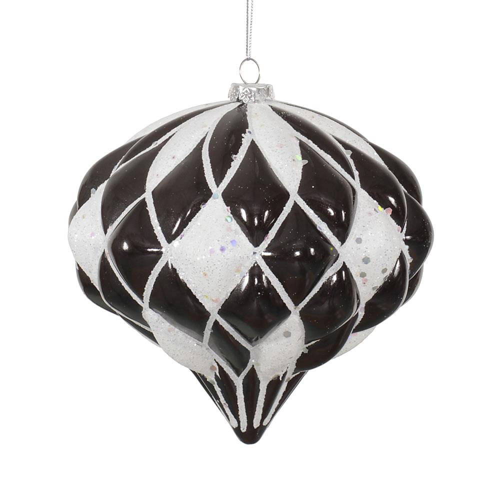 4" White Black Plaid Glitter Onion 3/Bag