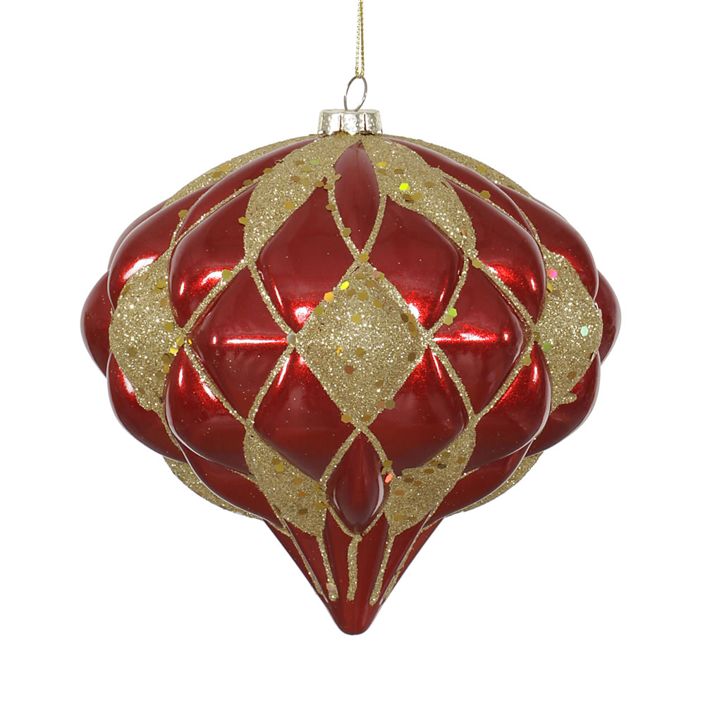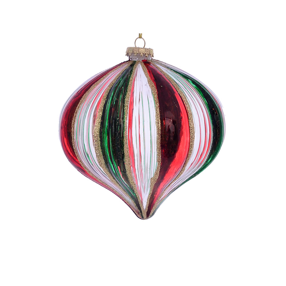 4" Red Green Swirl Onion Ornament 3/Bag