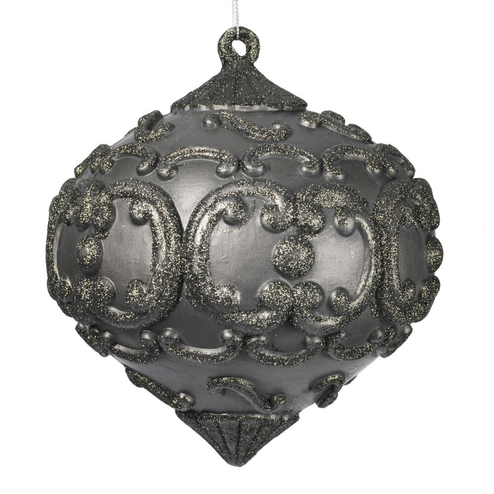 6" Gunmetal Antique Glitter Onion Orn