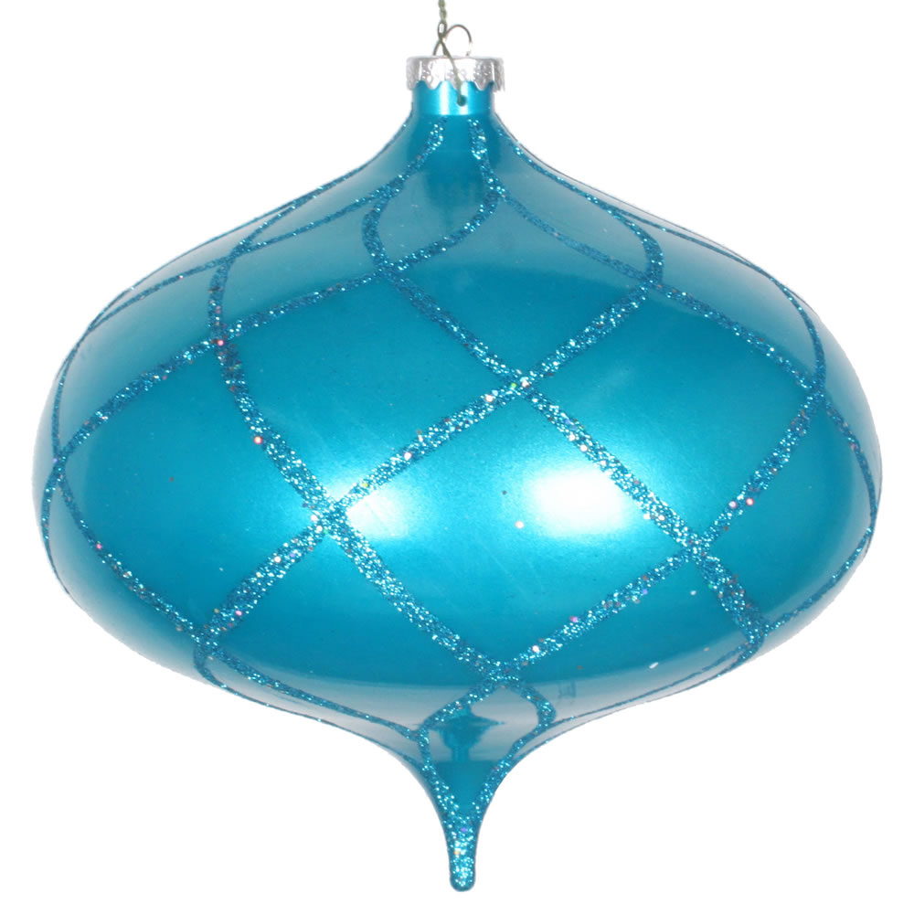 8" Turquoise Candy Glitter Net Onion Orn