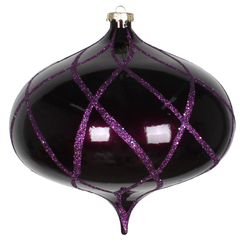 8" Plum Candy Glitter Net Onion Orn